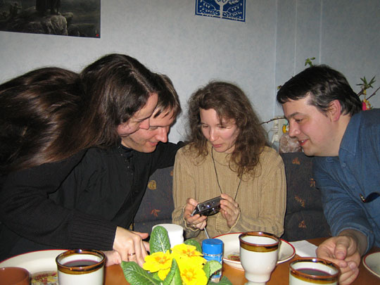 Bei weiteren Bechern Wein, Saft und Tee verging der Abend auf's Angenehmste. Es gab Erlebnisberichte über Urlaube in Irland und Schottland, sowie Hochzeits-Erinnerungen von Roland und Sabine (nebenbei wanderten die herrlichsten Fotos reihum...) Und natürlich waren vergangene (u. künftige) Tolkien-Things ebenso Thema, wie Anekdoten von den verschiedensten Events... und und und...! Die Zeit verging wie im Fluge und nachdem irgendwann bei uns allen die Augenlider in Richtung Teppichboden sanken und der bis dato lebhafte Redestrom allmählich versiegte, wurden diverse Nachtlager bereitet und schließlich krabbelten alle Gefährten satt, müde und glücklich in ihre "Schnarch-Säcke"!